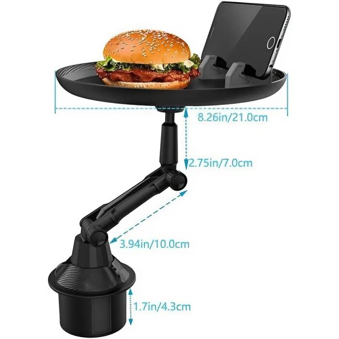استمتع برحلات آمنة ومرحة على الطريق مع قاعدة الهاتف متعددة الاستخدامات. حيث يمكنكم استخدامها كصينية طعام، حيث تحتوي على صينية للطعام وقاعدة هاتف للحفاظ على كل شيء منظماً. تتميز بإمكانية الدوران 360 درجة وذراع مفصلي قابل للتعديل لوضعية مثالية. القاعدة القابلة للفصل مناسبة للهواتف قياس 6.5-10.5 سم وصينية قياس 21 سم، مما يجعلها مثالية للرحلات الطويلة والسفر