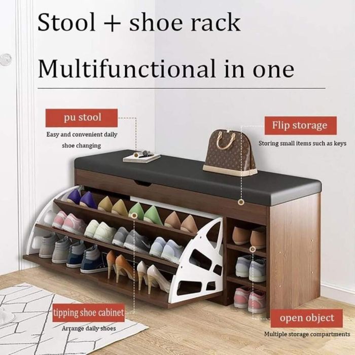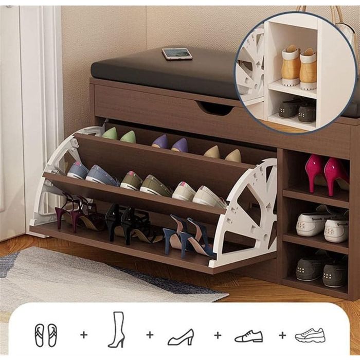 أصبح التنظيم أكثر سهولة، تحتوي وحدة التخزين على مقعد لارتداء وخلع الأحذية، بالإضافة إلى أنها مناسبة لتخزين الأحذية المسطحة والرياضية والكعب العالي، بينما توفر الكابينة العلوية مساحة تخزين حيث يمكنك وضع الجوارب، المفاتيح، النظارات الشمسية وغيرها من الأشياء الضرورية