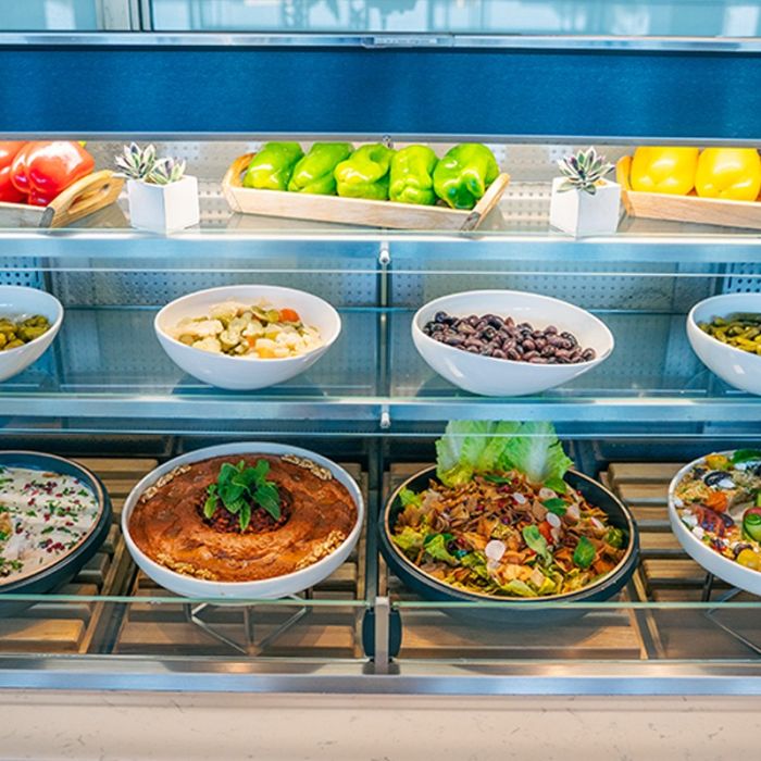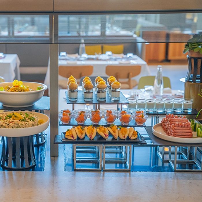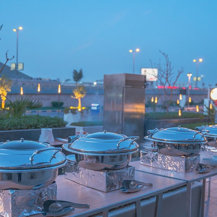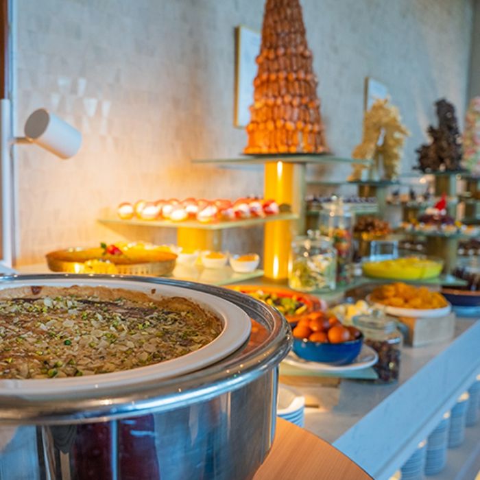 - بوفيه غني ومتنوع من المأكولات الشرقية والعالمية شامل ركن الطهي الحي والباربكيو