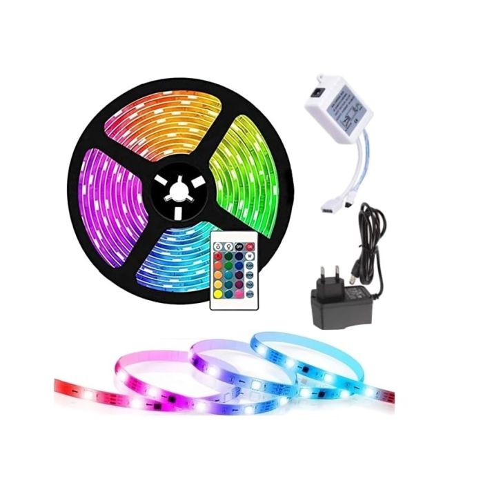 - شريط إضاءة SP Electron بطول 5 أمتار مقاوم للماء، 12 فولت، مستشعر صوت، 24 مفتاحًا للتحكم عن بعد، شريط إضاءة LED RGB نيون مع تغيير اللون للديكور المنزلي