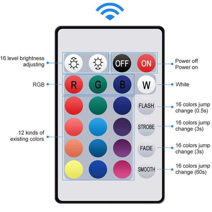 - خاصية خاصة التحكم عن بعد، مقاومة للماء، تغيير اللون