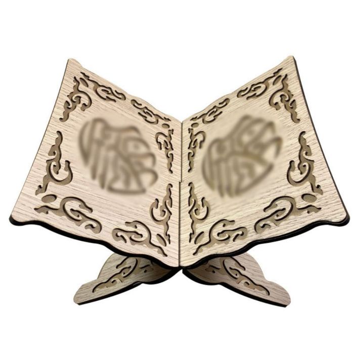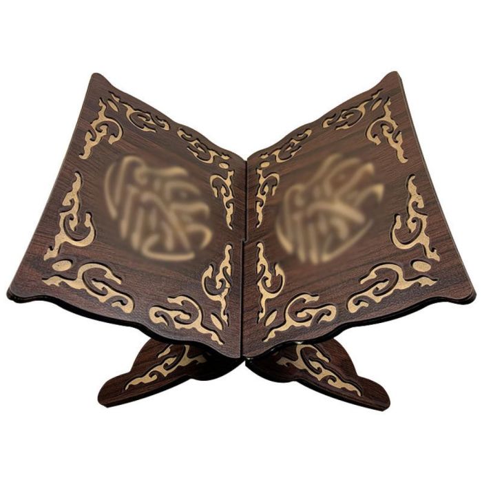 - تصميم خشبي مزخرف يمنح مظهرًا أنيقًا ومناسبًا لقراءة القرآن الكريم