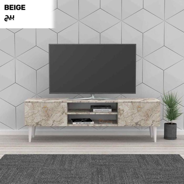 - طاولة تلفزيون ديكورية تساعد على رفع مستوى ديكور غرفة المعيشة.