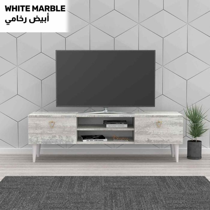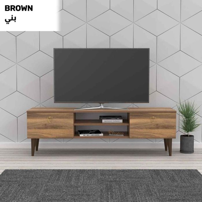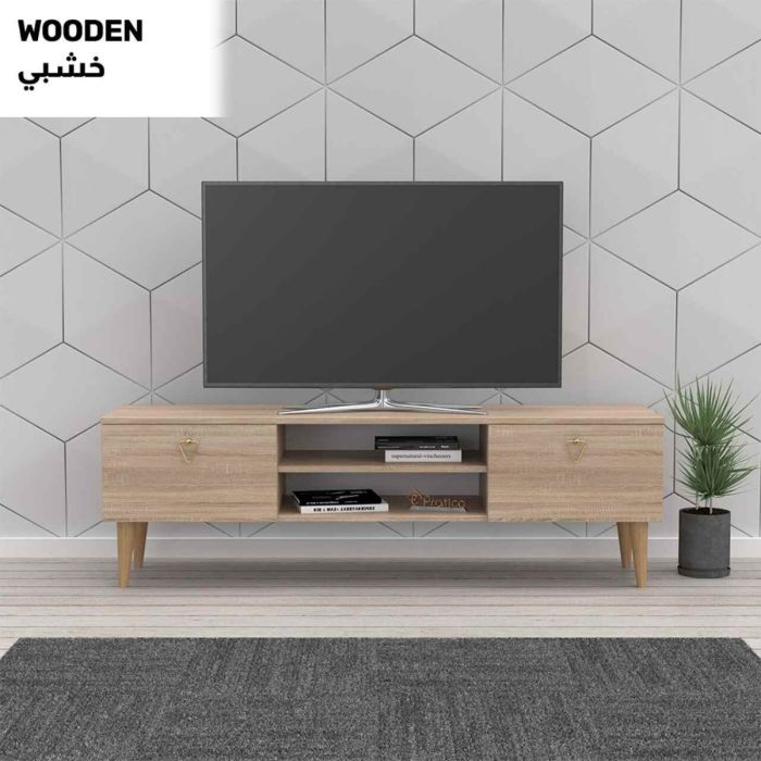 امنح غرفة المعيشة مظهرًا أكثر ترتيبًا وأناقة عبر طاولة تلفزيون ديكورية تجعل التجهيز يبدو مقصودًا ومكتملًا. التصميم الخشبي بطابع تركي يضيف دفئًا ولمسة حديثة، ويجعل ركن التلفزيون جزءًا أنيقًا من ديكور المنزل بدل أن يكون مجرد شاشة. مصنوعة من خشب MDF عالي الجودة لتمنح سطحًا واسعًا ومساحة كبيرة لوضع الإكسسوارات والديكورات اليومية، فتساعدك على التنظيم مع إبراز ذوقك بشكل واضح.