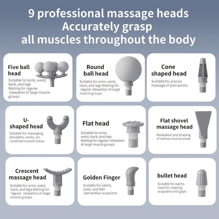 مسدس تدليك الأنسجة العميقة مع 9 رؤوس