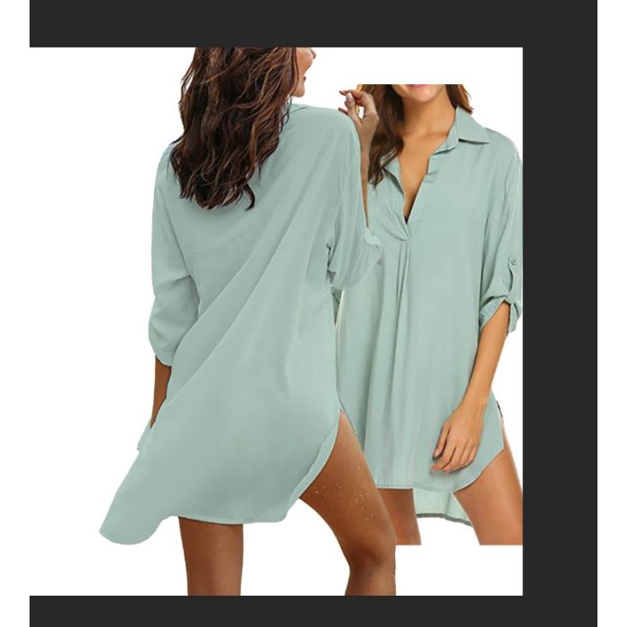 تألّقي بإطلالة جذابة على الشاطئ مع هذا الفستان الشيفون خفيف الوزن. تصميمه الواسع مع فتحة V عميقة يمنحك مظهراً أنيقاً ومريحاً أثناء الاسترخاء تحت أشعة الشمس. مناسب للسباحة والرحلات الشاطئية والمسابح.صفقة اليوم هي فستان شيفون صيفي بفتحة رقبة على شكل V للحماية من الشمس