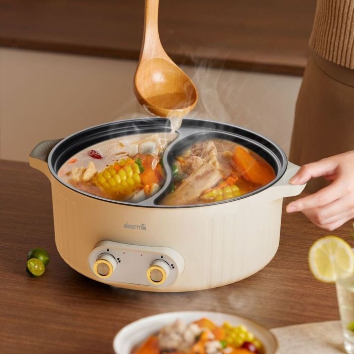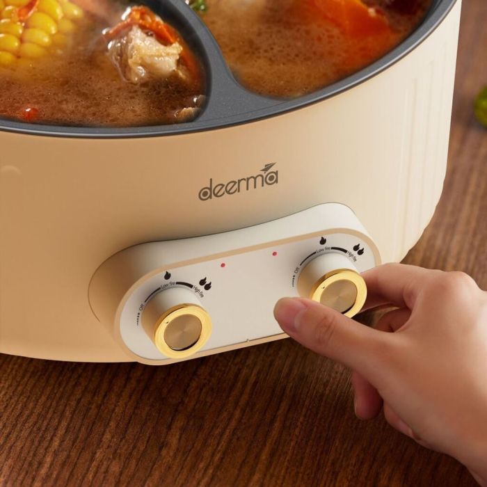 جهاز Deerma DG50W قدر طبخ كهربائي متعدد الوظائف يوفر مجموعة متنوعة من خيارات الطهي. وهو مناسب بشكل خاص للطهي المتنوع، حيث يتميز بتصميم فريد مكون من قسمين يسمح لك بطهي نوعين مختلفين من الطعام في وقت واحد. وهو مثالي للعائلات ذات التفضيلات الغذائية المتنوعة أو لأولئك الذين يستمتعون بمجموعة متنوعة من النكهات في وجبة واحدة.
