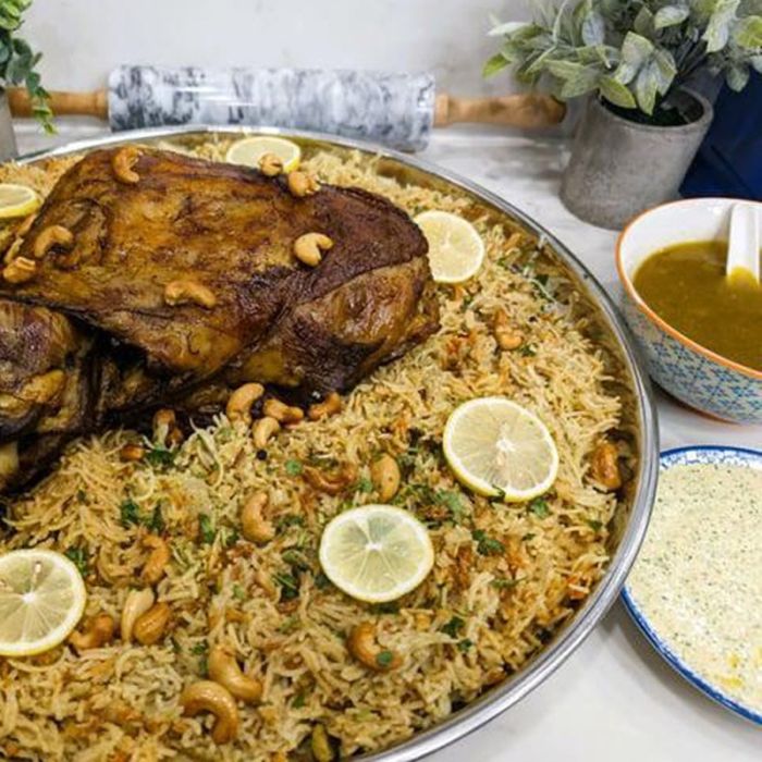 استمتعوا بلحم الضأن المحشو اللذيذ أوزي، يشمل الفتوش والحمص وصلصة الدقوس. تم تحضيره بواسطة طاهينا ذو الخبرة العالية.