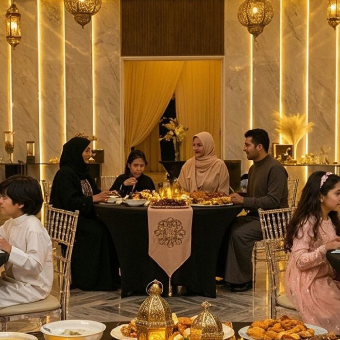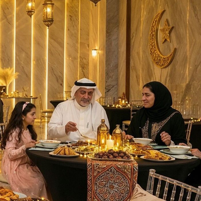 استمتعوا بـ أمسية إفطار غبقة متكاملة في فندق Ocean View، مع المشروبات الرمضانية التقليدية وتشكيلة واسعة من الأطباق الشهية. احتفلوا بالشهر الفضيل في أجواء دافئة ومريحة مع العائلة والأصدقاء.