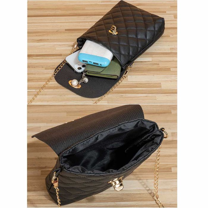 حقيبة كروس مزخرفة بالألماس للسيدات مصنوعة من مواد PU عالية الجودة، تضفي لمسة من الأناقة والتميز على إطلالتك اليومية، تصميمها العملي يتيح لك التنقل بسهولة وراحة، مع مساحة كافية لحمل الهاتف المحمول والأغراض الأساسية، تتميز بقفل سلسلة متين يضمن أمان مقتنياتك، مما يجعلها الخيار المثالي للسيدات الباحثات عن الأناقة والعملية في آن واحد.
