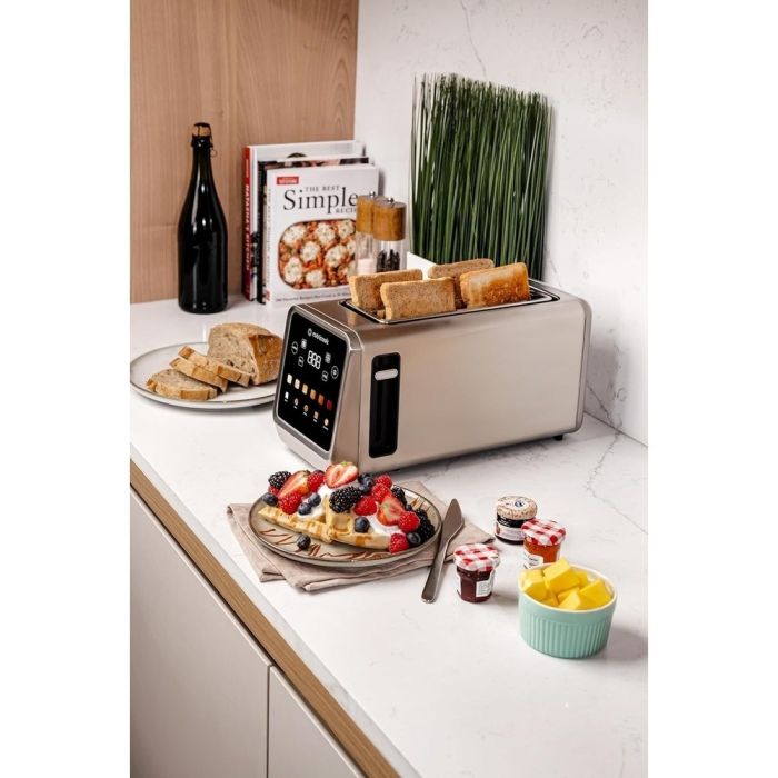 تمتع بتحميص مثالي مع محمصة Nutricook الرقمية لأربع شرائح. شاشة اللمس البديهية تجعل التحكم سهلاً، مع وظائف إزالة الجليد وإعادة التسخين للحفاظ على الطعم المثالي لكل قطعة خبز. استمتع بتجربة تحميص مخصصة وسريعة كل يوم.