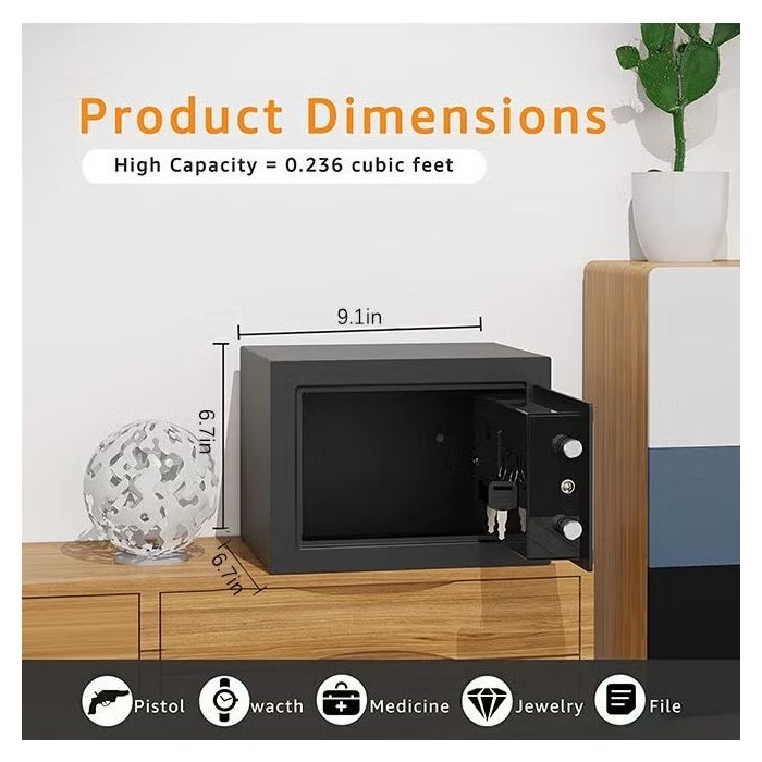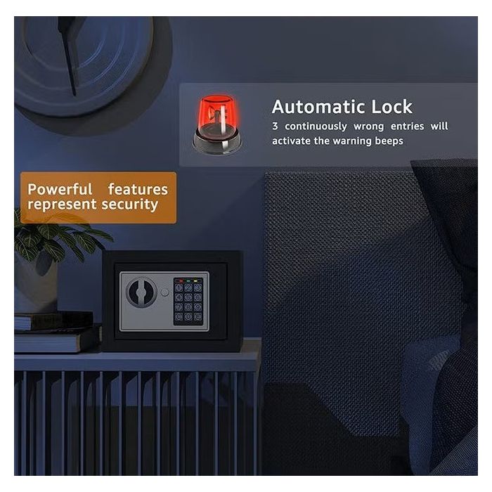 الحل المثالي لتأمين الأشياء الثمينة في المنازل والمكاتب أو أثناء السفر. يتميز بالصندوق المقاوم والآمن الذي يسهل الوصول إليه باستخدام لوحة المفاتيح الرقمية. الصندوق صغير الحجم ولكن يوفر مساحة كافية لتخزين الأشياء الأساسية، مما يضمن لك راحة البال بفضل آلية القفل المتينة. مثالي للاستخدام الشخصي والتجاري، ويوفر أمانًا إضافيًا لممتلكاتك.