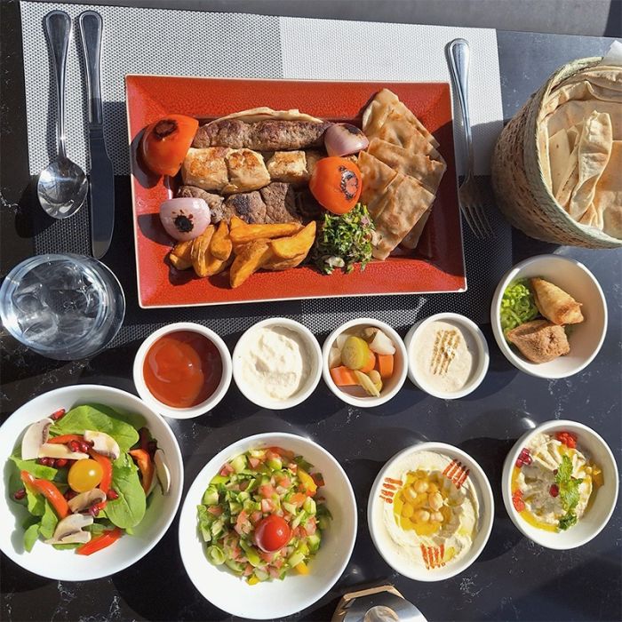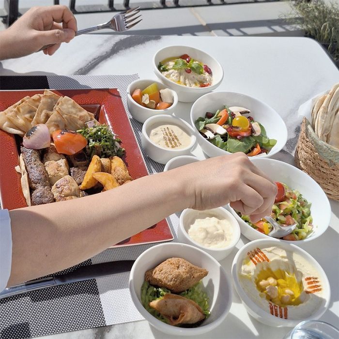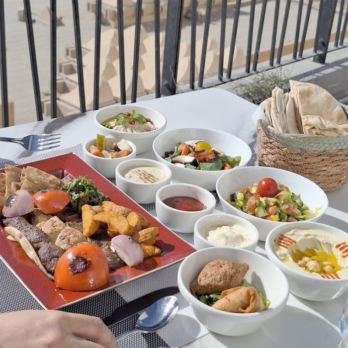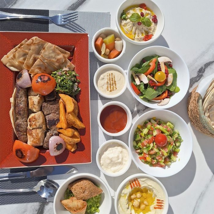 - يشمل المزة الباردة والساخنة + مشاوي مشكلة