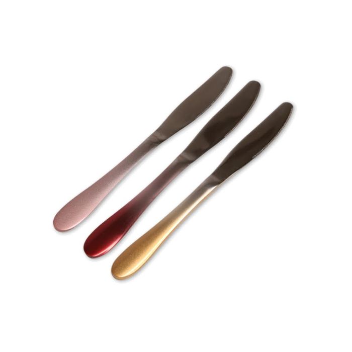 أضيفي لمسة من الأناقة العصرية إلى مائدتك مع طقم السكاكين المكون من ثلاث قطع والمصنوع من الستانلس ستيل المتين. يتميز كل سكين بتصميم انسيابي متكامل من المقبض إلى النصل في قطعة واحدة لراحة الاستخدام ومظهر أنيق ومتوازن. تمنح الألوان المتدرجة لمسة من الحيوية والجمال، مما يجعل الطقم مثالياً للاستخدام اليومي أو المناسبات الخاصة. يجمع التصميم بين المتانة والراحة والأسلوب العصري في آنٍ واحد.