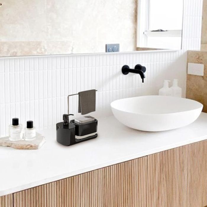 جدد مساحتك بتصميمه المبتكر، منظم أدوات غسل الصحون. مزود بقضيب تعليق وموزع صابون، وهو مصنوع من ABS والبوليسترين والفولاذ المقاوم للصدأ. هذه الرفوف متعددة الاستخدامات تتسع لصابون اليدين، وجل الاستحمام، والشامبو، وغيرها