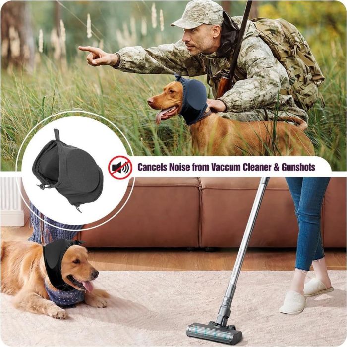 غطاء أذن للكلاب مضاد للضوضاء مصنوع من خامة ناعمة توفر تهدئة مريحة، يساعد في تخفيف التوتر أثناء الأصوات العالية مثل الألعاب النارية والعواصف، مزود برباط مرن للثبات