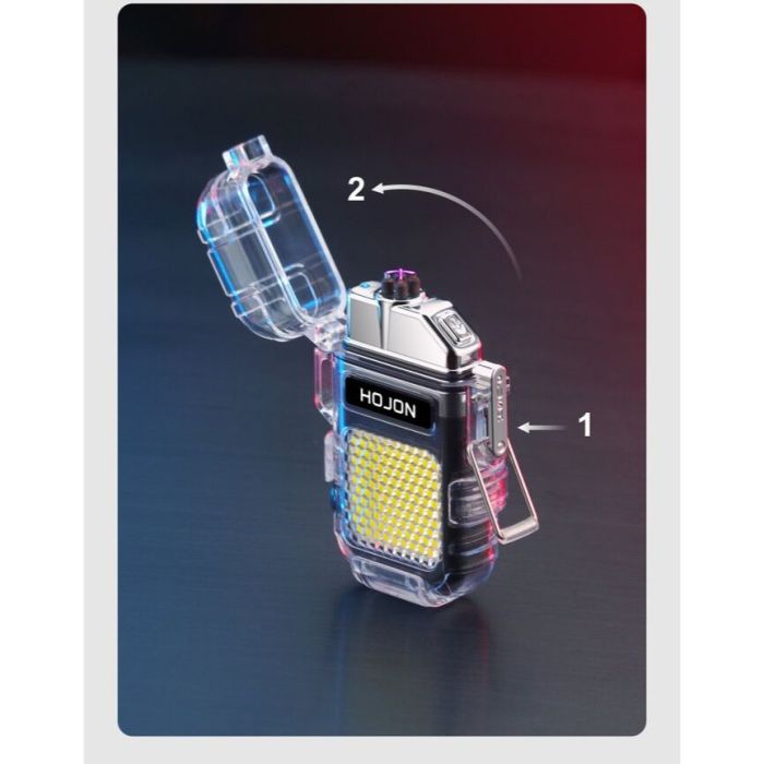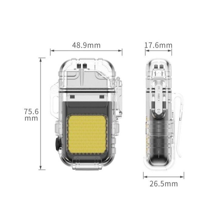 - ولاعة شفافة مقاومة للماء بإشعال مزدوج مع كشاف LED