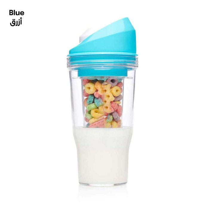- كوب إفطار مزدوج لفصل الحبوب عن الحليب 364 مل - أزرق