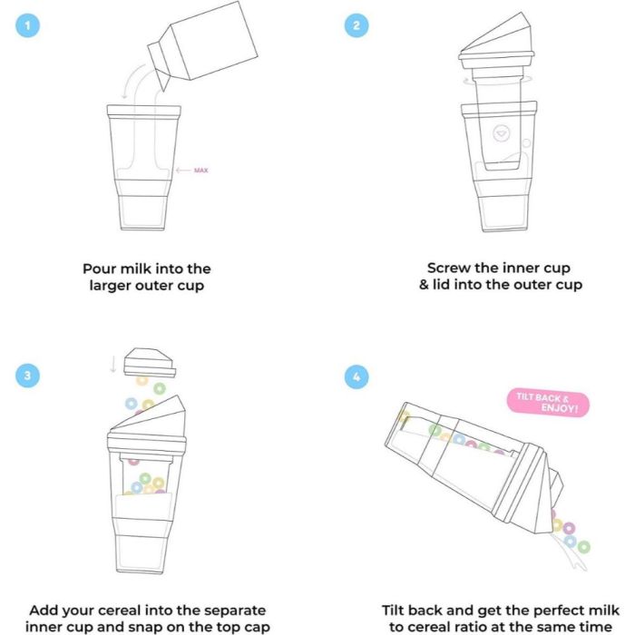 - تصميم مزدوج الطبقة يفصل الحبوب عن الحليب للحفاظ على القرمشة حتى وقت التناول