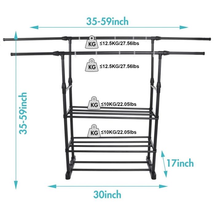 - رف تعليق الملابس المزدوج مع 3 أرفف