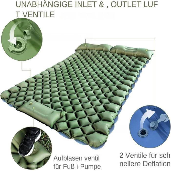 - فرشة نوم هوائية مزدوجة قابلة للنفخ مع مضخة قدم مدمجة