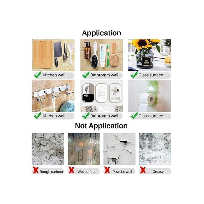 - استخدمه لتثبيت أو لصق أشياء مثل جدار الصور، وقاعدة هاتف السيارة، وملصقات الحائط، والعلاقات واللوحات اللاصقة، وحافظات الهواتف، وغيرها. كما يمكن استخدام الشريط اللاصق الشفاف في المكتب، والمنزل، والحمام، وغيرها. أضف لمسة من الراحة إلى حياتك!