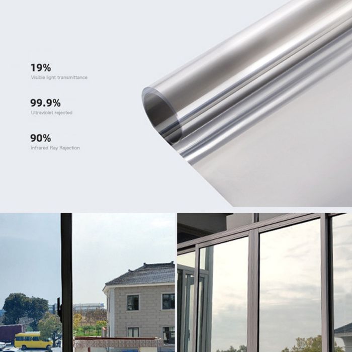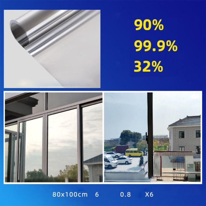 فيلم زجاج مصنوع من مادة البولي إيثيلين تيرفثالات عالية الجودة، وهو مصمم لتوفير الخصوصية التامة أثناء النهار، حيث يسمح بالرؤية من الداخل للخارج ويمنع الرؤية من الخارج للداخل، يتميز بقدرته على حجب الأشعة فوق البنفسجية وتقليل الحرارة الداخلية، مما يحافظ على جودة الأثاث وتوفير الطاقة، كما أنه يضيف مظهراً جمالياً وعصرياً للنوافذ والواجهات الزجاجية.