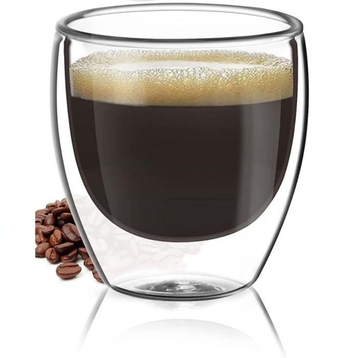 - فنجان قهوة زجاجي معزول بجدار مزدوج