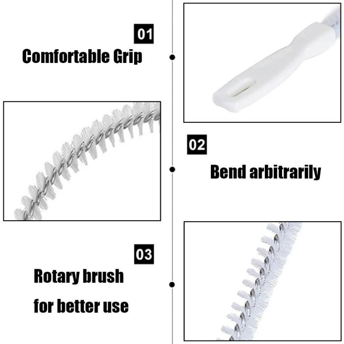 - فرشاة دوارة تزيل بسهولة الشعر والأوساخ في أي أنبوب