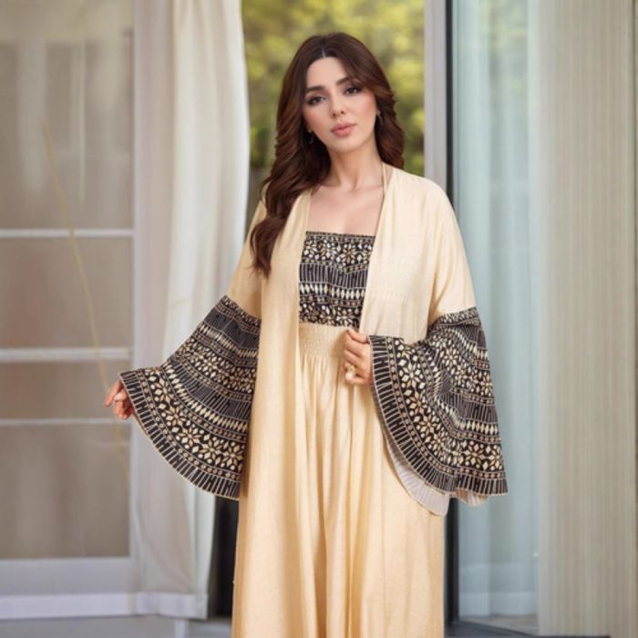 - طقم فستان وكارديجان بأكمام واسعة للسيدات