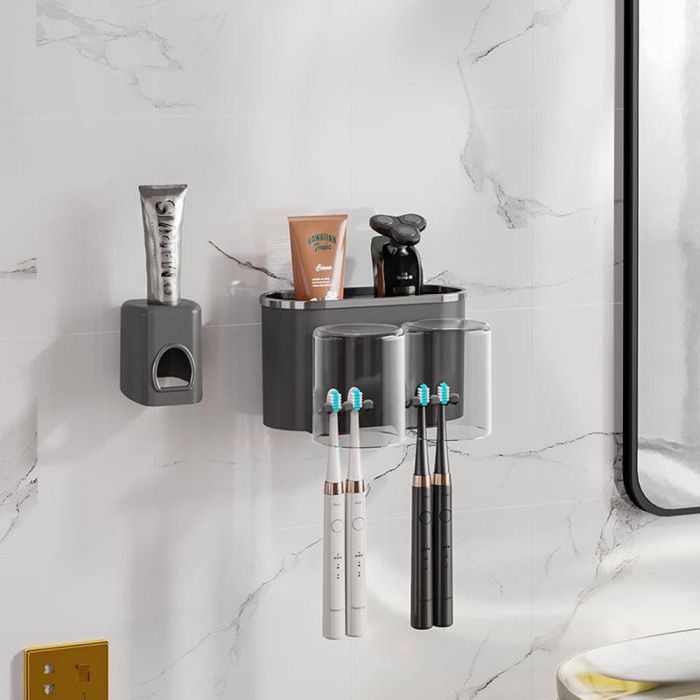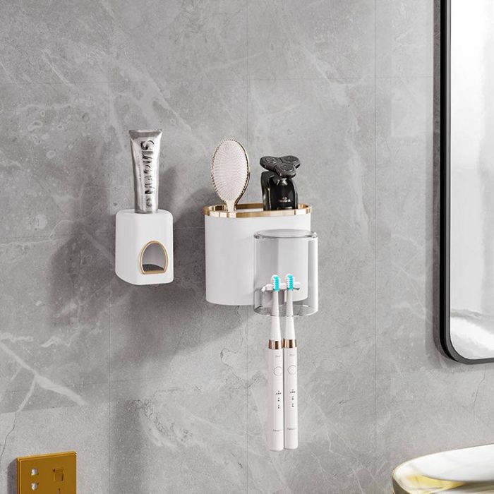 - ستاند فرشاة أسنان بدون حفر مع أكواب وموزع معجون أسنان