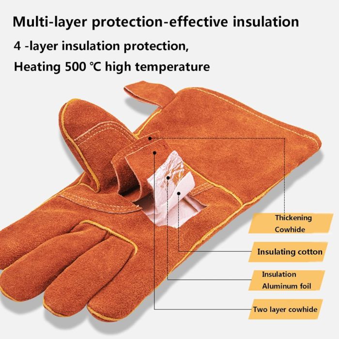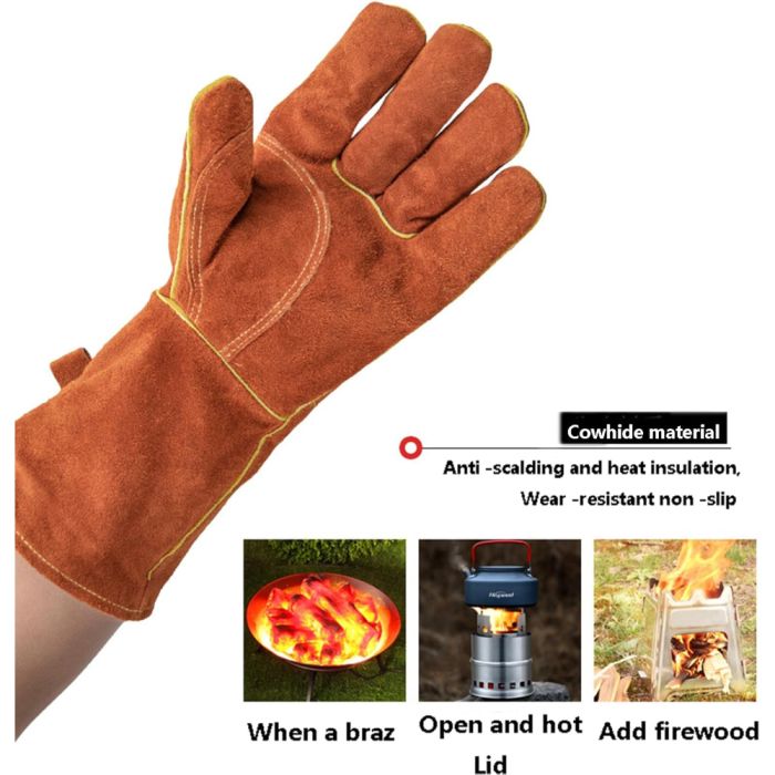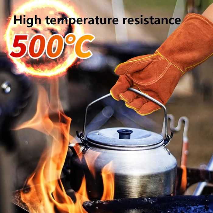- قفازات عازلة للحرارة ومقاومة للهب من جلد البقر