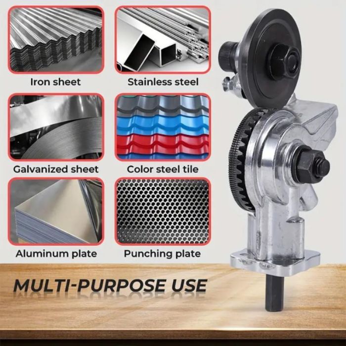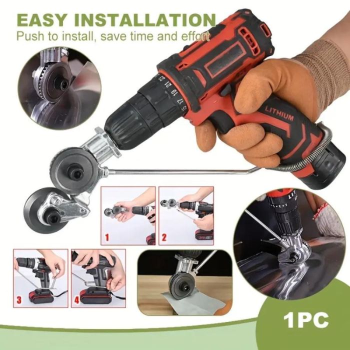 أداة مبتكرة تُركب بسهولة على المثاقب الكهربائية لتتيح لك قص الصفائح المعدنية بدقة وسلاسة. مثالية للحديد، الفولاذ، النحاس، والألومنيوم، مع تصميم يضمن أمان الاستخدام وخلو القطع من النتوءات. تعمل بكفاءة مع مثاقب بجهد 12-21 فولت، مما يجعلها خيارًا مثاليًا للاستخدامات المنزلية والصناعية. خفيفة الوزن وسهلة التركيب، مما يضمن سهولة التشغيل والتنقل.