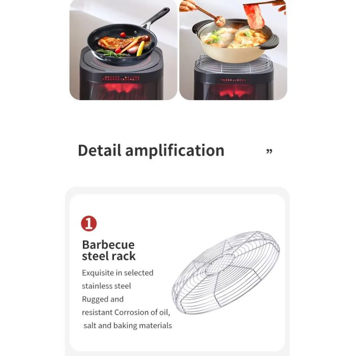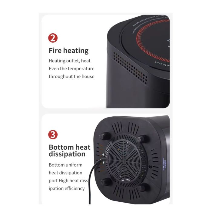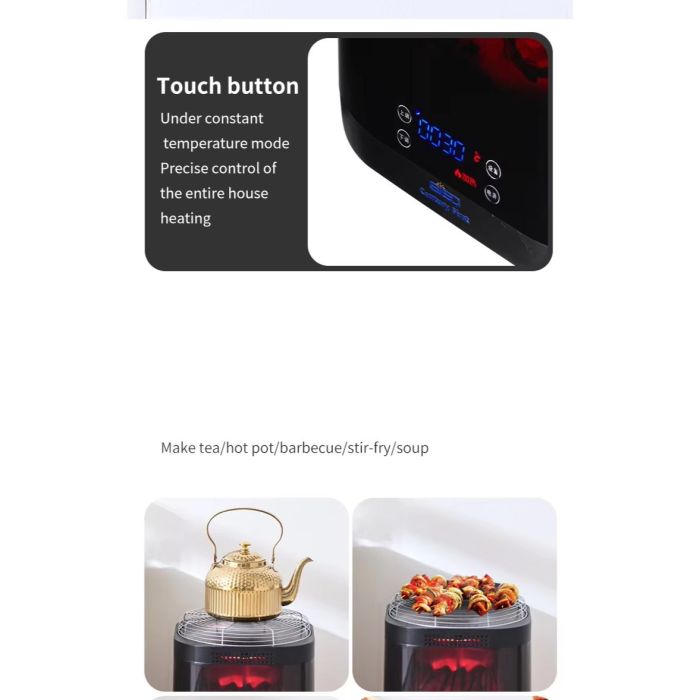 استمتع بتدفئة قوية وفعالة مع المدفأة الكهربائية المحمولة بالأشعة تحت الحمراء، المصممة للمنازل والمكاتب والمساحات التجارية. تتميز بموقد طهي مدمج، مما يجعلها عملية تجمع بين الدفء والراحة. بفضل التدفئة المحيطة بزاوية 360 درجة وترموستات قابل للتعديل (0-55 درجة مئوية)، توزع المدفأة الحرارة بالتساوي، مما يضمن راحة دائمة. يوفر عنصر التسخين بتقنية PTC الموفر للطاقة دفءًا سريعًا مع تقليل استهلاك الطاقة. كما أن تأثير اللهب المُحاكي بتقنية LED وتأثير نار الفحم يخلقان أجواءً دافئة ومريحة. شغّله بسهولة باستخدام لوحة لمس أو جهاز تحكم عن بُعد، واعتمد على خاصية الحماية من الحرارة الزائدة والانقلاب لضمان استخدام آمن. صغير الحجم، يناسب أي غرفة بسلاسة مع أداء استثنائي.