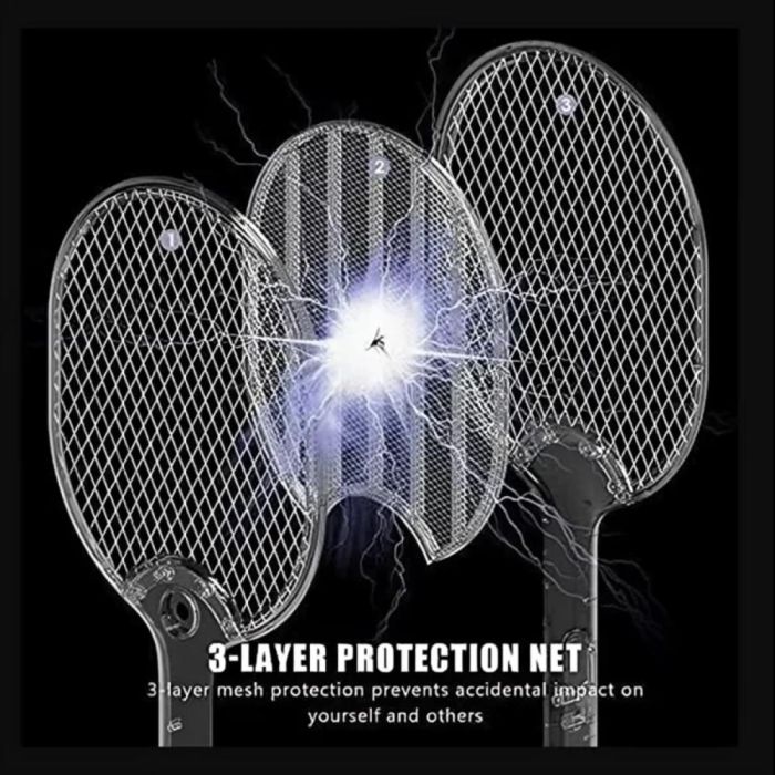 صاعق حشرات كهربائي محمول وآمن، مزود بشبكة ثلاثية الطبقات وبطارية قابلة للشحن، للقضاء على البعوض والذباب بسهولة.
