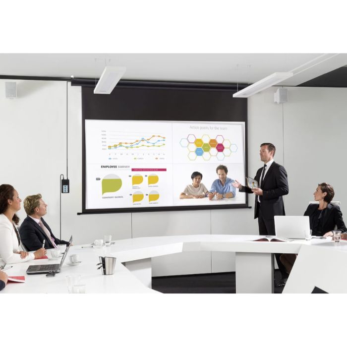 شاشة بروجكتور كهربائية متطورة بحجم 100 بوصة ونسبة عرض 16:9، تقدم تجربة عرض استثنائية. مصنوعة من مادة MATTE WHITE لعرض صور واضحة ونابضة بالحياة، مع محرك متزامن يوفر تشغيلًا هادئًا وسلسًا. تتيح التحكم السهل من خلال لوحة تحكم مدمجة أو جهاز تحكم عن بعد RF. قابلة للتثبيت على السقف أو الجدار، مما يجعلها الخيار الأمثل للاستخدام في المنازل، المكاتب، أو قاعات الاجتماعات