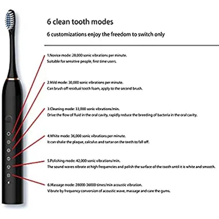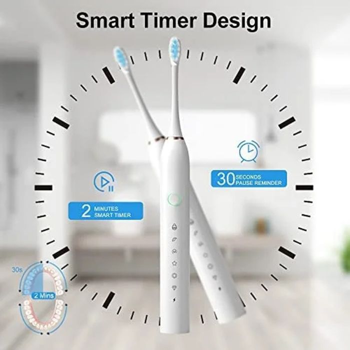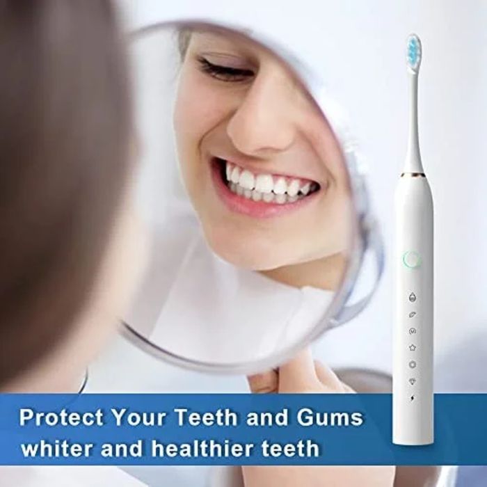 - فرشاة أسنان كهربائية قابلة لإعادة الشحن، رأس فرشاة تنظيف بالموجات فوق الصوتية
