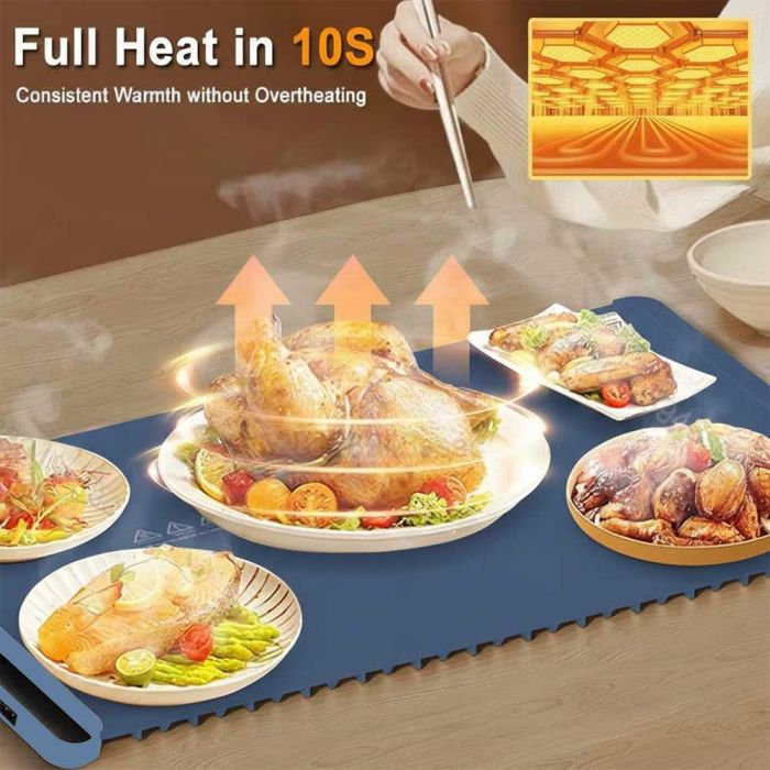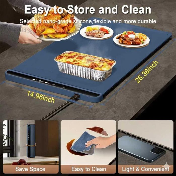 صممت حصيرة تدفئة وإذابة تجميد الطعام لتوزيع الحرارة بسرعة وبشكل متساوي على كامل السطح في ثواني، مصنوعة من السيليكون عالي الجودة بتقنية النانو، وتتميز بمقاومة عالية للماء والزيوت والبقع، مع مرونة لإمكانية الطي والتخزين
