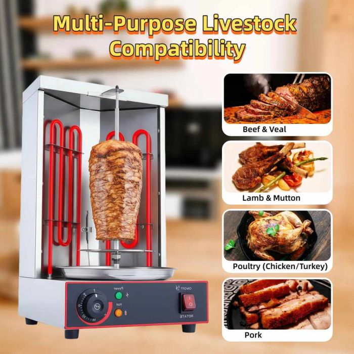 • شواية شاورما عامودية كهربائية للمنازل والمطاعم والاستخدام الخارجي
