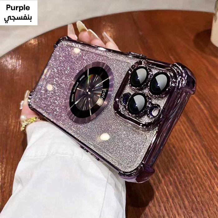 - غطاء حماية مغناطيسي لامع مطلي لهواتف آيفون 16 و 17