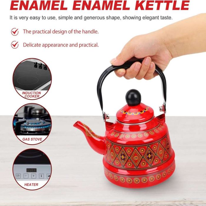 غوري شاي مزخرف سعة 1.7 لتر يجمع بين الجمال العملي والمتانة العالية، مصنوع من معدن مطلي مقاوم للصدأ والتآكل لضمان استخدام طويل الأمد، يوزع الحرارة بسرعة وبشكل متساوٍ لتحضير مثالي، تصميمه المسطح يضمن ثباتًا وسهولة في الاستخدام، مقاوم للحروق لراحة وأمان أكبر، مثالي للاستخدام اليومي في المنزل أو أثناء الرحلات والتخييم، وسطحه الأملس يجعل تنظيفه سريعًا وسهلاً، إضافة أنيقة وضرورية لكل مطبخ