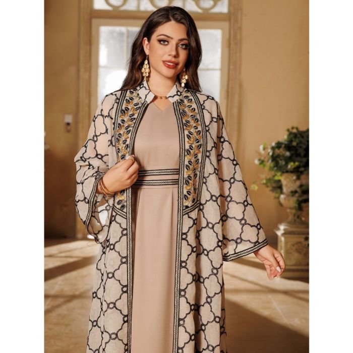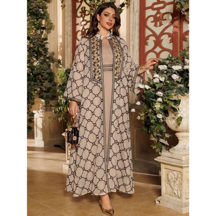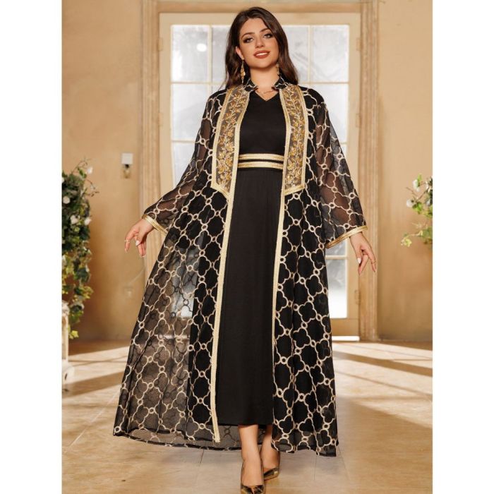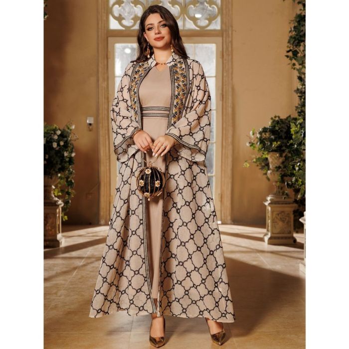 طقم فستان وعباية خارجية أنيق للسيدات