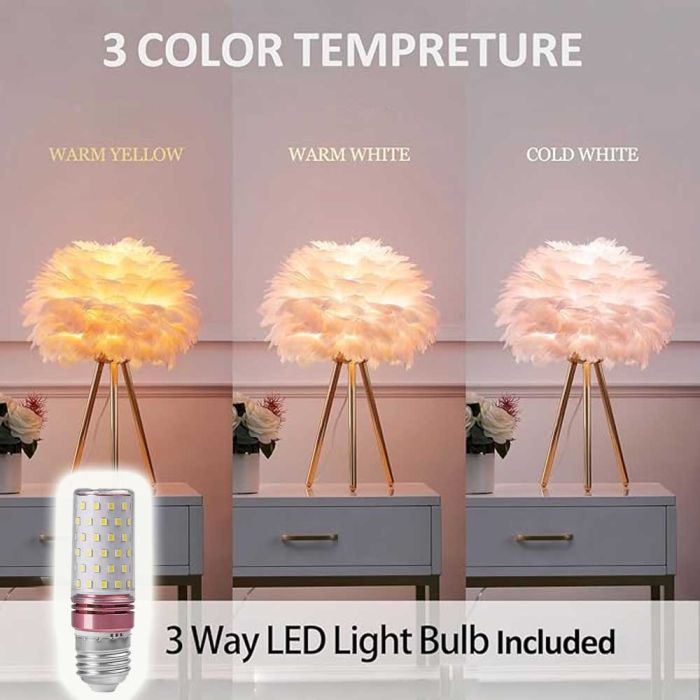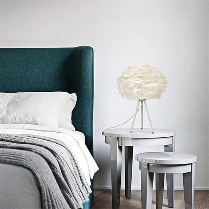 أضف لمسة من الفخامة والنعومة إلى منزلك مع مصباح طاولة من الريش بتصميم عصري وقاعدة معدنية لامعة. يمدك هذا المصباح بإضاءة ناعمة ودافئة تخلق أجواء مريحة وهادئة في غرفة النوم أو المعيشة. الريش الفاخر يعكس الضوء بشكل ساحر، ليمنحك تجربة إضاءة فريدة وجمالاً لا مثيل له في كل زاوية من منزلك