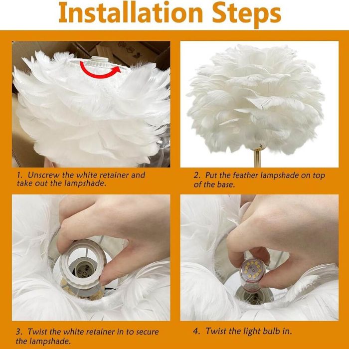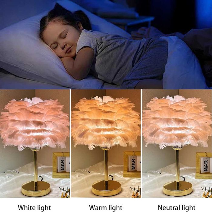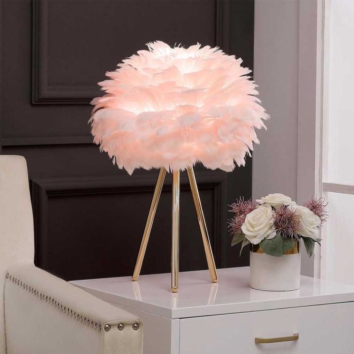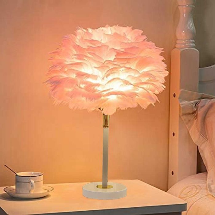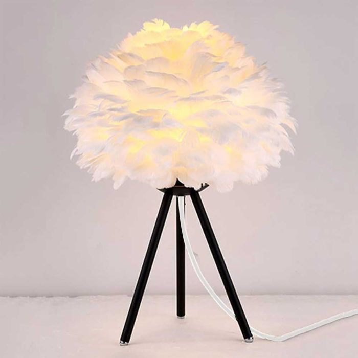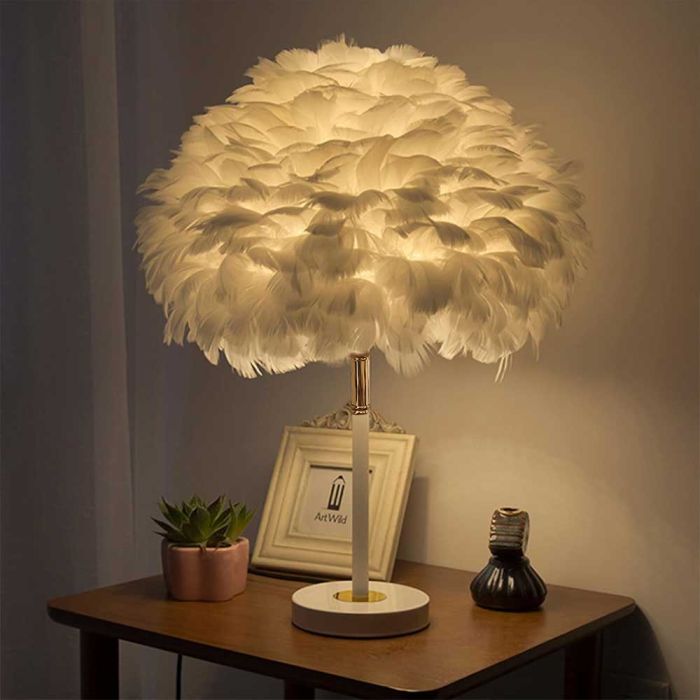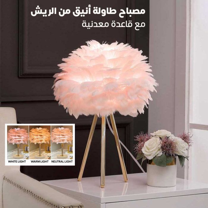 - مصباح طاولة أنيق من الريش مع قاعدة معدنية