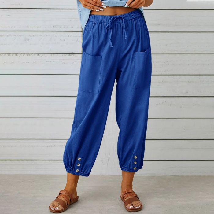 - بنطلون كتان أنيق بخصر مرتفع للسيدات