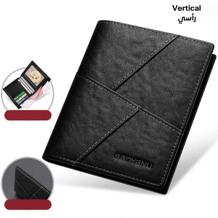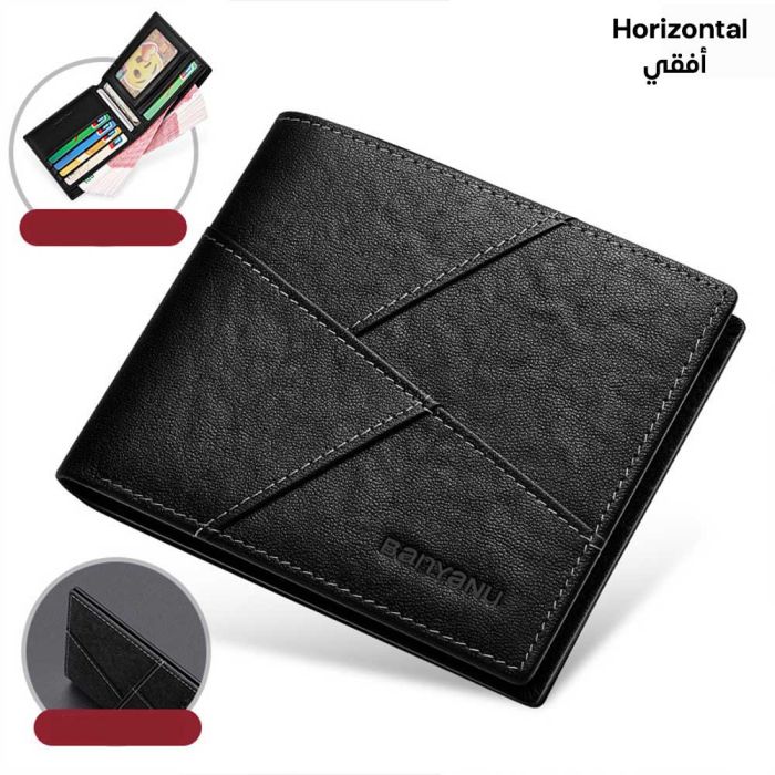 - محفظة رجالية أنيقة مصنوعة من طبقة جلد طبيعي (رأسية وأفقية)