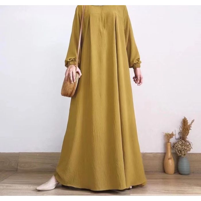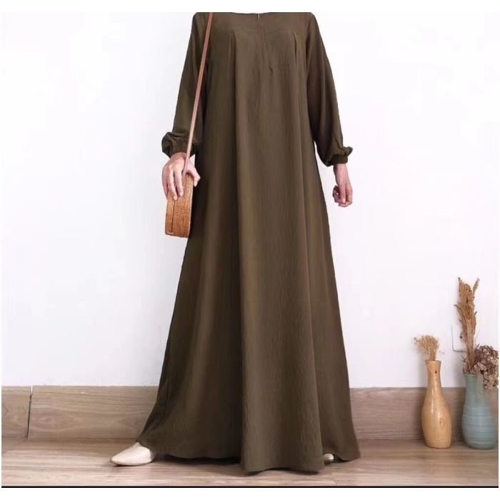 - فستان طويل أنيق بأكمام طويلة وسحاب أمامي