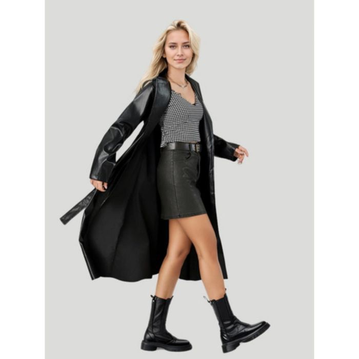 صفقة اليوم هي معطف جلد طويل أنيق للسيدات