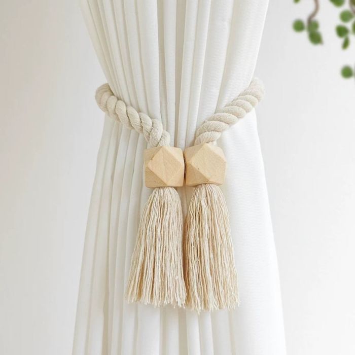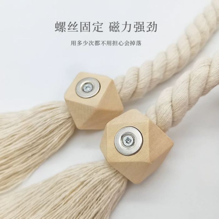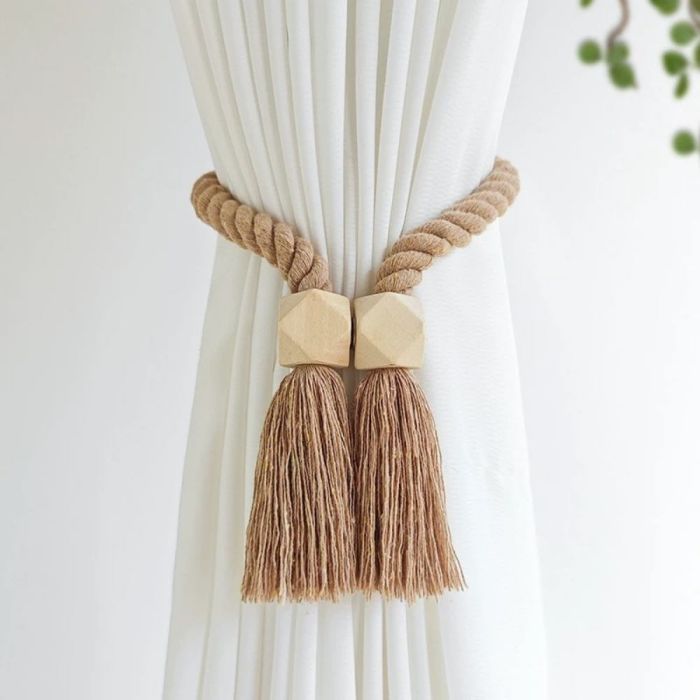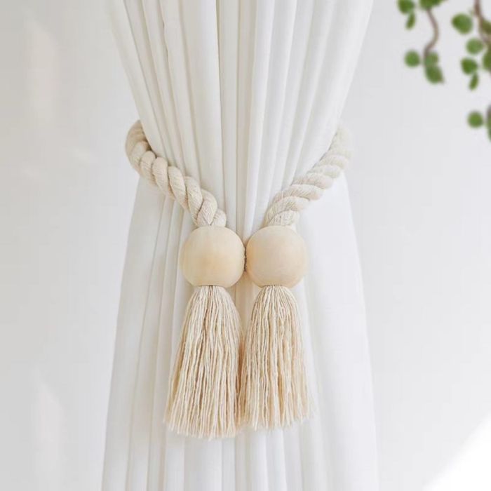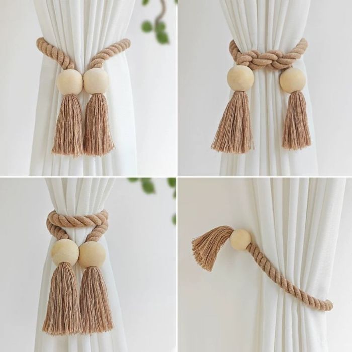 ربطات ستائر مغناطيسية بشرّابة أنيقة مصنوعة من حبال قطنية مع خرز خشبي ومغناطيس قوي، تساعد على تجميع الستائر بسهولة، تضيف لمسة دافئة للديكور، وتوفر تثبيتًا ثابتًا دون إتلاف القماش