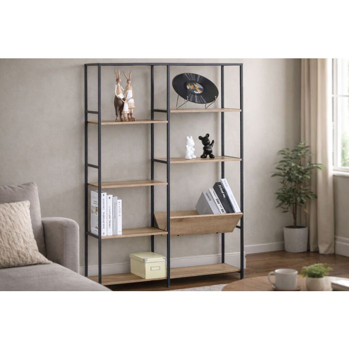 تُعد وحدة الرفوف المعدنية هذه خيارًا عمليًا وأنيقًا للجدار الرئيسي في غرفة المعيشة. فهي مصنوعة من المعدن، مما يضمن ثباتها ومتانتها، ويجعلها مثالية للاستخدام اليومي. يضفي لونها البيج جوًا دافئًا، بينما تلبي وظائفها احتياجات أي منزل عصري